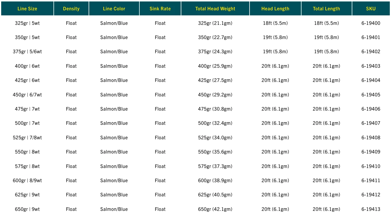 RIO Skagit Max Power heads cast the largest flies and the heaviest sinking tips with exceptional ease. The unique weight distribution deeply loads rods for long casts while the powerful front taper delivers enough punch to turn over all the weight you need to get the fly into the strike zone. Shorter head lengths make the Max Power the perfect choice for shorter rods or when space behind the caster is limited. The low stretch core gives incredible levels of sensitivity when casting and fishing, and provides enhanced detection of takes, more positive hook sets, and far greater control when playing a fish. In addition, this line is built with SlickCast, creating the slickest, most durable coating on the market—producing the least amount of friction ever measured in a fly line.