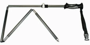 Collapsible aluminum wading staff locks open with adjustable height from 49-54 inches. Includes belt sheath and wrist lanyard. Aluminum tip.
